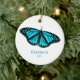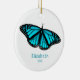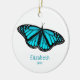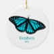 This cute butterfly themed ornament features a single pretty teal / turquoise blue, black and white butterfly with custom name and commemorative year - by katz_d_zynes