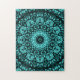 Teal Turquoise Floral Mandala Jigsaw Puzzle