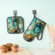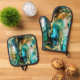 Teal Turquoise Gold Abstract Art Oven Mitt & Pot Holder Set