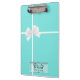 Teal Turquoise White Bow Classy Elegant Glam Clipboard