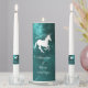 Personalize special candles for your wedding ceremony with a set of Teal Unicorn Unity Candle Set. Candle design features a starry background with a unicorn adorned with stars. Personalize with the groom and bride's names along with the wedding date, and taper candles with surnames. Additional wedding stationery and gifts available with this design as well.
