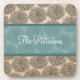 Elegant and modern Vintage Zinnia Coaster Set featuring a pretty textured floral background and an alluring turquoise two-toned banner. Easy to customize, simply add the personalized text of your choosing in the text field provided. Click "Customize It" to find additional personalization options.