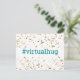 There are a lot of people you miss hugging. Maybe you've been physically-distancing. Or social distancing. Or maybe you just can't make those hugs happen in person right now. This postcard could help just the tiniest bit. In the center, I've added #virtualhug. Change the text if you like. Or the color. Or background color. Or the font. At the top and the bottom, I've added a graphic depicting simulated metallic gold confetti. Cheer up someone you've been missing with this festive card.