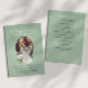 Elegant teal funeral programs with soft floral accents provide a beautiful and meaningful way to celebrate the life of a loved one. The front cover features a central portrait framed with delicate watercolor flowers, paired with the words “In Loving Memory,” the name, and life dates in a graceful script and serif combination. The soothing teal background adds a calming and serene touch, making this design both modern and timeless. On the reverse side, the order of service is clearly outlined, including music selections, hymns, readings, and closing details, ensuring guests can easily follow along throughout the ceremony. The floral details lend a warm and comforting aesthetic while maintaining a refined and dignified style, making it suitable for funerals, memorials, or celebrations of life. Beyond its role as a guide, this program also serves as a lasting keepsake, giving family and friends a beautiful way to honor and remember their loved one’s life and legacy.