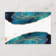 Share your blissful day with this trendy reception card featuring teal and gold watercolor geode and gold script typography above your reception details. Easy to personalize with custom options.