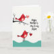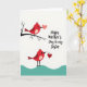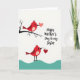 This greeting card features a bright white background with two simple red birds facing one another in a tender, caring way ❤️. The upper bird sits on a thin black branch near the top left, with small pink blush marks and tiny dark eyes that soften its expression. It holds a light pink heart in its beak, angled downward as if offering it to the bird below. The lower bird stands on a smooth teal wave shape along the bottom, grounding the scene with a calm, natural curve. In its beak is a deeper red heart, creating a sweet back-and-forth gesture that feels like shared affection or close friendship 🌼. On the right side, a short Mother’s Day message appears in dark lettering, set with plenty of open space around it so the birds remain the focus. The branch is a crisp black line, while the teal base arcs gently from left to right beneath the lower bird.