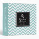 Wedding photo album | Teal and white chevron pattern binder. Personalizable background color and text. Elegant wedding gift idea for newly weds / mr and mrs married couple. Grey and white Zig zag pattern design. Classy Zigzag stripes with name initials of bride and groom plus date. Silver shiny wedding ring logo.