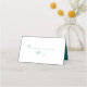 Elegant, simple, minimalist teal wedding place card with gold rope heart and modern calligraphy script.