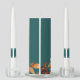 Teal Wedding Unity Candle Set. Symbolize your union with a unity candle set that reflects the warmth and beauty of your autumn celebration. Decorated with watercolor florals and foliage in copper, terracotta, burnt orange, and beige tones set against a rich teal backdrop, this set is as meaningful as it is visually stunning. The hand-painted leaves and blooms create a romantic focal point for your ceremony and become a cherished keepsake long after the vows are exchanged. Personalize your set and bring light and color to your unity moment.