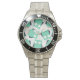 Has heft and feel of expensive stainless steel quartz watches. Good band with safety catch. I removed links, which is easy because engraved arrows show direction to push the linking pins. As always by this seller, the image (a railroad logo) is a perfect reproduction of my emailed image, and is precisely spaced and aligned.