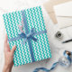 Teal White Chevron Zig-Zag Pattern Wrapping Paper