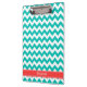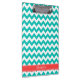 Teal White Chevron ZigZag Coral Name Monogram Clipboard