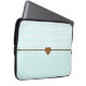 Teal white dots stripes gold faux glitter heart laptop sleeve