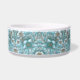 Beautiful Teal White Floral Ceramic Pet Bowl