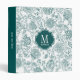 Simple and elegant, Teal & White Flower Pattern Monogram Binder. Perfect for recipes, family photos, school and more.