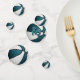 This sporty basketball birthday party confetti features a stylized basketball graphic with recolored alternating teal and white panels on the front and back of each confetti piece, upon which you can customize your text - by katz_d_zynes