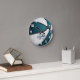 This team colors basketball wall clock is suitable for a girl or a boy and features a basketball with alternating teal and white recolored panels and clock face numerals - personalize with player name in an "autograph" style font overlying the athlete's jersey number - by katz_d_zynes