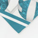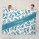 This cool volleyball team colors fleece blanket for girls features a pattern of varied size stylized teal white volleyballs turned every which way overlying a volleyball net detail graphic - the volleyballs' teal panels are blended with an artsy, girly floral pattern - personalize her name in a sophisticated handwritten font on a bold, angled, full width teal color strip - background and name strip colors are customizable - by katz_d_zynes