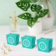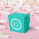 Teal White Greek Key Round Frame Initial Monogram Favor Boxes