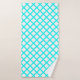 Teal White Harlequin Diamond Stripes Pattern Bath Towel