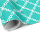 Teal White Large Fancy Quatrefoil Pattern Wrapping Paper