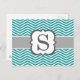 Teal White Monogram Letter S Chevron Postcard