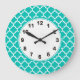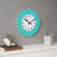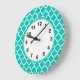 Teal White Moroccan Quatrefoil Pattern #5 Large Clock