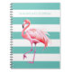 Teal and white stripes pink flamingo personalized name notebook.