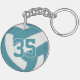 This sporty volleyball themed keychain features a realistic looking teal and white volleyball upon which you can customize the player's name, jersey number and court position, plus school or club name and mascot name in a varsity letter style font - by katz_d_zynes