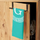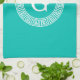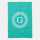 Teal Wht Greek Key Rnd Frame Initial Monogram Kitchen Towel