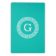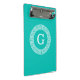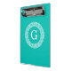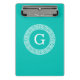 Teal Wht Greek Key Rnd Frame Initial Monogram Mini Clipboard