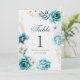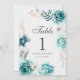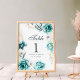 Teal Wildflower Wedding Table Number Sign