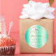 Make a lasting impression with this elegant and modern product label design featuring pretty squiggled gold ornate with cute hearts on a luxury shimmery teal colored background.