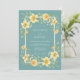 A delicate teal backdrop embraces a cascade of painterly yellow blossoms and lush green foliage. This enchanting design evokes a romantic and whimsical atmosphere, perfect for a memorable occasion. The vibrant floral arrangement offers a touch of natural elegance.
