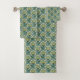 Teal & Yellow Floral Pattern Bath Towel Set