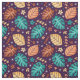 Teal Yellow Orange Tropical Monstera Leaf Pattern Fabric