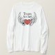 I love this shirt. I had written to the artist asking her if this picture was available on a shirt, and she wrote me back telling me where I could find the shirt. These shirts can be custom made to have a different saying. I loved this saying and went with it. The artist wrote me back later to tell me that she had seen my order go through. How's that for service? Pretty special. It's just as displayed. Perfect!