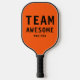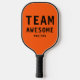 Team Awesome Funny Sports Simple Typography Name Pickleball Paddle features the text "Team Awesome" with your personalized name below on an orange background. Personalize by editing the text in the text boxes provided. Perfect gifts for Christmas, birthday, Mother's Day, Father's Day and more. Designed by ©Evco Studio www.zazzle.com/store/evcostudio