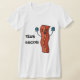 The material is a great quality that is hard to find with most tee shirts. Fabric was not see-through or thin at all, but was also very soft and comfortable. The shirt description states that it runs a little small, so I sized up one size for a perfect fit! I would definitely buy this type of tee shirt again because I love the fit and high quality fabric that I cannot find anywhere else. The printing was perfect and just as pictured. Loved the cute quote and really enjoy the tee in both the quality and design. I love quirky typography designs and funny quotes and I am extremely pleased with the overall quality and value I get at Zazzle!