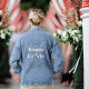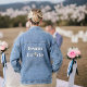 Team Bride - Bridal Party White Glittery Look Rose Denim Jacket