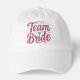 Our baseball hat features the phrase "team bride" with whimsical elements in burgundy and aqua for a fun shower gift for your bridesmaids to celebrate you in your bride era!