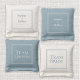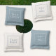 Modern design features a minimalist design with a double framed border in crisp white on a solid soft blue background or coordinating and trendy dusty blue on a white background. This classic simple design makes a unique keepsake for the couple. Personalize names of couple and event date in elegant blue or white lettering and script. The back is customized with "Team Bride" or "Team Groom" to add more fun to the game! These are a perfect accompaniment for any wedding party! Copy and paste the following text to see the matching Cornhole Set https://www.zazzle.com/bride_groom_wedding_engagement_party_dusty_blue_cornhole_set-256531941867168096 . Please visit the collection link on this page to view all of the matching items! Please use the message link for questions or custom color requests or email me at invitationsuites@gmail.com.