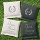 Add some extra fun to your wedding with this set of cornhole throw bags! An elegant design featuring a simple laurel wreath framing the couple's initials. Inspired by 1920s invitations, it blends classic formality with modern flair, using a traditional serif font, and vintage calligraphy script. Personalize the template with the couple's names, monogram and ceremony date — with dedicated bags for 'Team Bride' and 'Team Groom'. Perfect for weddings, bridal showers, or pre-wedding celebrations, and a fun outdoor party game that becomes a cherished keepsake. Printed colors: green, and natural white. Each set comes with 2 sets of 4 bean bags. Shop the collection for matching stationery and supplies for sale online!