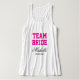 Team Bride tank tops with bridesmaid's name. Personalized flowy racerback tank tops for team bride. Fun tanktops for brides entourage. Cute neon pink and black typography design for bride to be and bride's crew. Make your own cool clothing for wedding, bridal shower, bachelorette party, girls night out, girls weekend, ladies night, hen do, etc. Funny clothes for women and girls getting married. Stylish typography. Change quantity to get a cheap price per top.