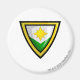 Well Designed High Quality Magnet. Colors are Vibrant Clear Excellent good size Diameter Circumference Fonts Red Folio Bold Clover Green Outline Puffy White Interior Image
