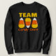 You either love them or hate them. This Team a candy Corn design features 3 hand drawn candy corns with the phrase Team Candy Corn. Text is editable, so you can add any phrase you like of delete the text entirely if you prefer. Edit text from product page, or to change text style or color, use the design tool.