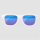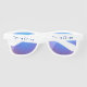 These sunglasses are shown in a cute solid white color design with blue mirror lenses. Text reads Team Cheer.