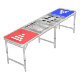 this custom beer pong table featuring bold red and blue team zones and a built-in "House Rules" section at center. The color-coded sides clearly define Team Red and Team Blue, making setup fast and gameplay competitive. The central panel features the game rules, and cup setups, so everyone’s on the same page, even after a few rounds.