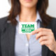 Green team personalized name tag. Ideal for office teams, family events, fun gaming or for sporting teams. Personalize this design with your own team name or family name and team or motto and name and your role on the verse. Other colors available. Great for team building, events and motivational team gifting. Designed by www.mylittleeden.com on zazzle