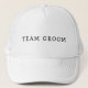 Get ready to celebrate with the groom in style with this "Team Groom Bachelor" trucker hat. This hat is the perfect accessory for a memorable bachelor party with the groom's closest buddies.